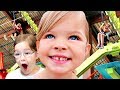 Our kids do a crazy high ropes course with a zip line, they climb through a tunnel of mazes, and challenge us to a laser game!